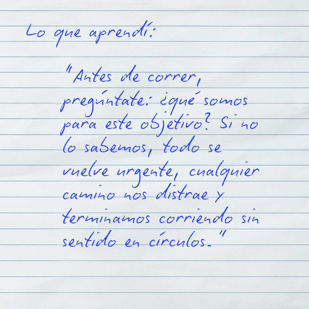 Por eso, en cada sesión, vuelvo a la misma pregunta, como quien vuelve a un faro al que siempre regresa el barco: ¿qué somos para este objetivo? No “quién soy yo” ni “cómo suena mi título”, sino qué función cumplimos, para quién la cumplimos y en qué ritmo la hacemos una realidad.